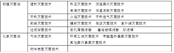 物理滅菌法化學滅菌法的類型?列表詳明。