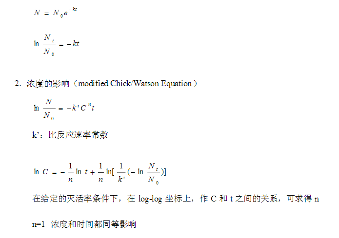在一定消毒劑的濃度下,消毒速度可用Chick定律(1908年)表示: - dN/dt = k N
