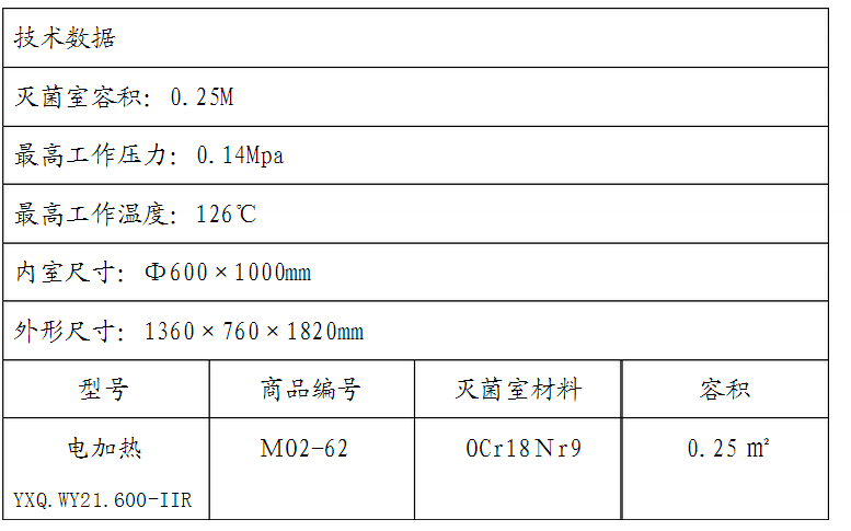 七、電熱管:蒸汽發(fā)生器低部裝有∪形電熱管3支,每支4千瓦,適合380伏三相電源?;?支,每支3千瓦,適合110伏或220伏單相電源。滅菌器之輸入電源,電壓應按照銘牌的規(guī)定,不能任意采用,應定期清除電熱管表面之水垢,以免影響熱量之傳導。 八、主要技術參數(shù):#p#分頁標題#e#