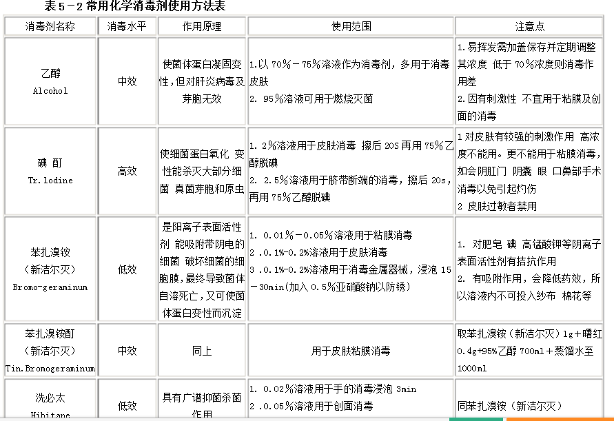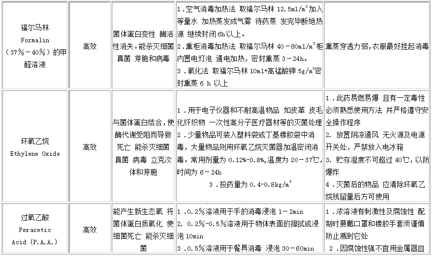 此外,尚可應(yīng)用甲醛或過(guò)氧乙酸等進(jìn)行熏蒸滅菌(詳見(jiàn)表5-2)。