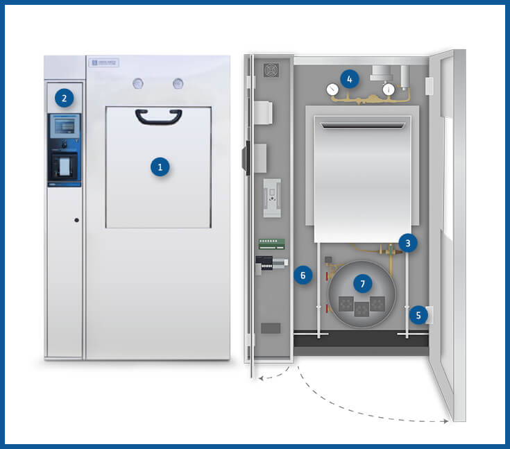 典型的實(shí)驗(yàn)室和醫(yī)院高壓滅菌器由以下關(guān)鍵組件構(gòu)成。