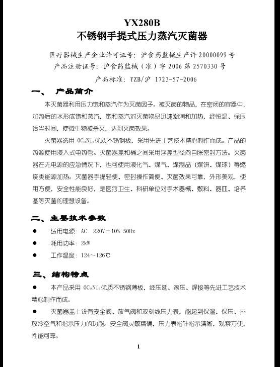 上海三申YX-280B手提式不銹鋼蒸汽滅菌器說(shuō)明書(shū)